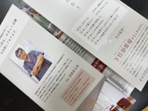 グルー治療(血管内静脈塞栓術)をパンフレットに載せました。